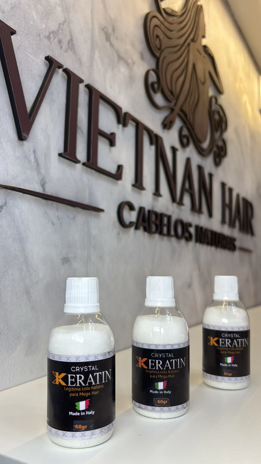 Queratina pura em pó, indicada para reconstrução capilar ou uso em alongamentos. Garante acabamento profissional e fixação de alto desempenho.